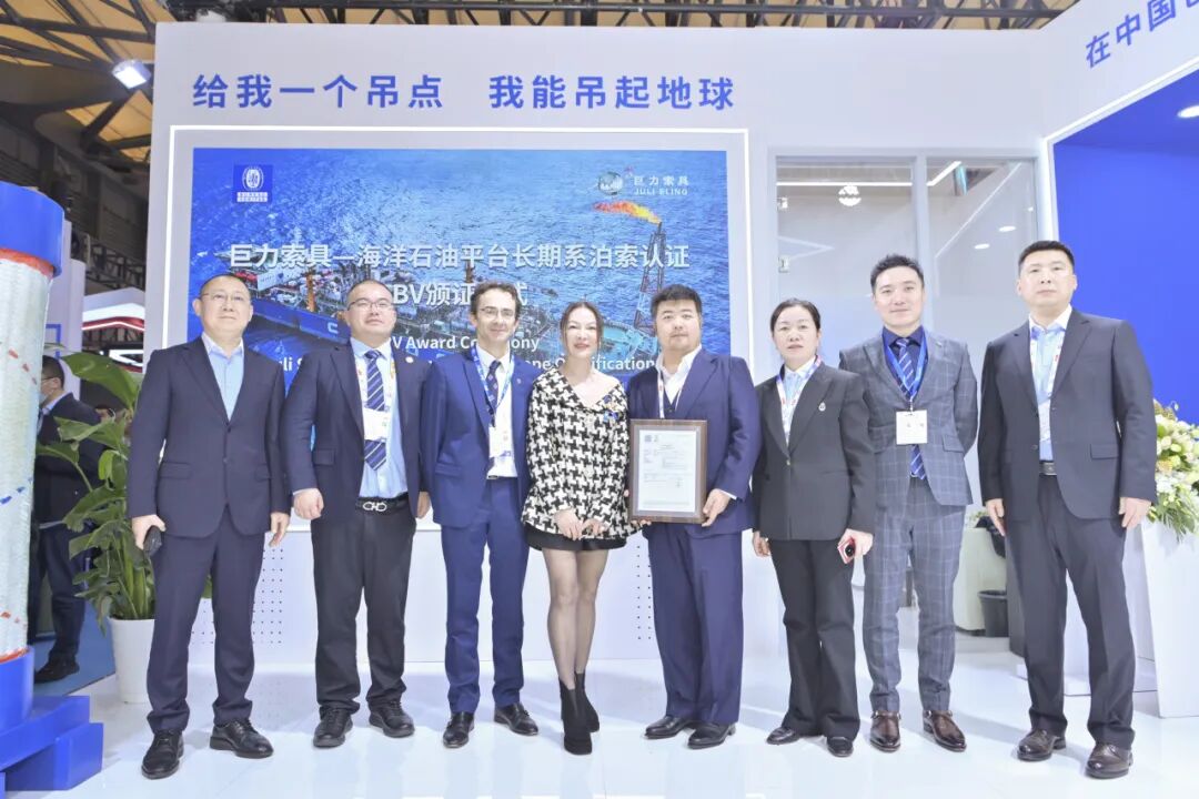 12月2日,2025中國(guó)國(guó)際海事會(huì)展(MARINTEC CHINA 2025)盛大開(kāi)幕。開(kāi)展首日,全球領(lǐng)先的檢驗(yàn)認(rèn)證機(jī)構(gòu)法國(guó)船級(jí)社(Bureau Veritas,簡(jiǎn)稱BV)為巨力索具舉行“海洋石油平臺(tái)長(zhǎng)期系泊索”專項(xiàng)認(rèn)證證書(shū)頒證儀式,巨力索具總裁楊超親臨現(xiàn)場(chǎng),代表公司接受了這份象征國(guó)際高標(biāo)準(zhǔn)認(rèn)可的重要證書(shū)。